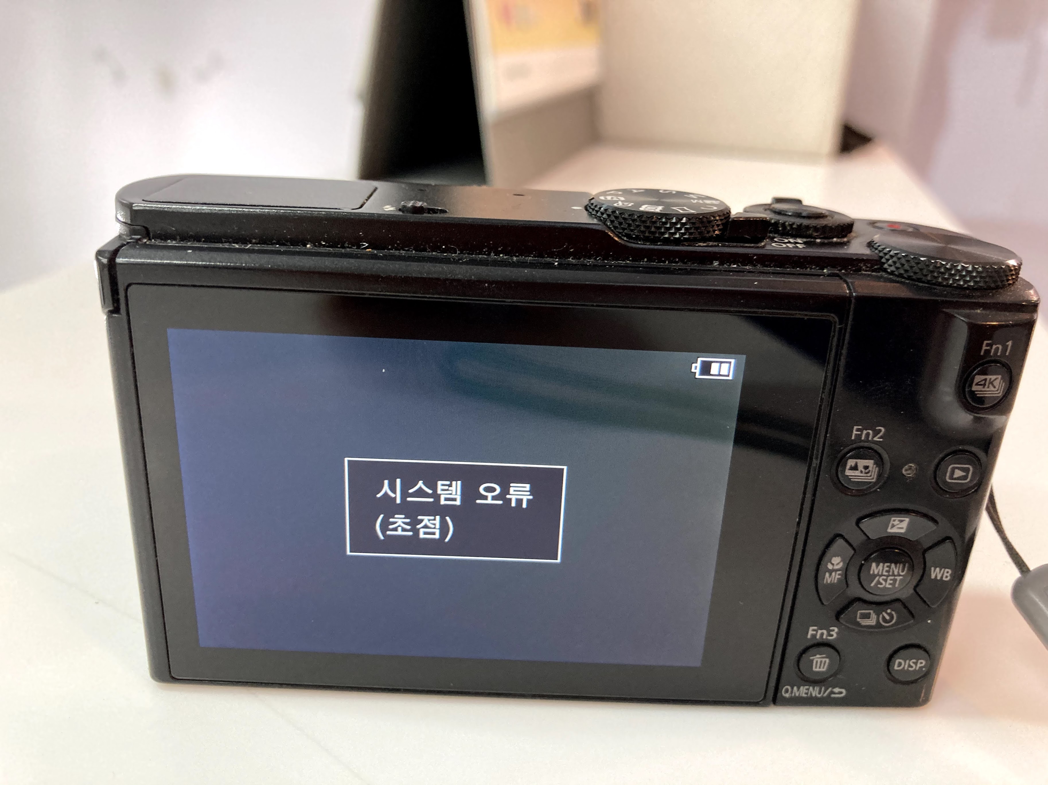 이거 뭐야 시스템 오류(촛점)?, 그리고 전원을 켜고 나서 꺼도 저 카메라 줌이 안으로 들어가지 않는다.