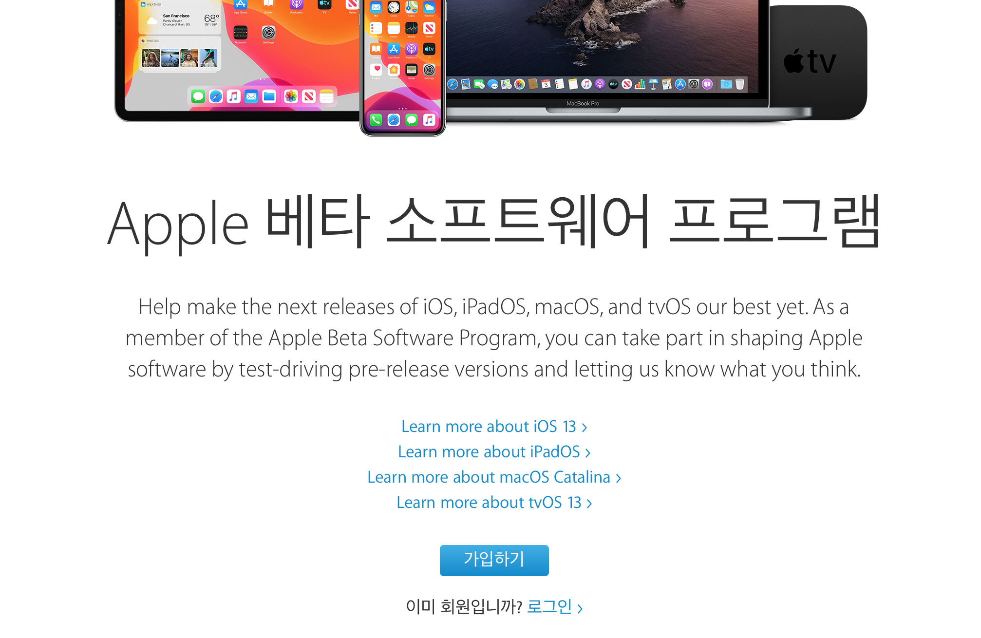 아 이어 맥OS 카탈리나 베타 받으려면 베타 소프트웨어 프로그램을 가입해야 하는군. 그래 아나, 가입.